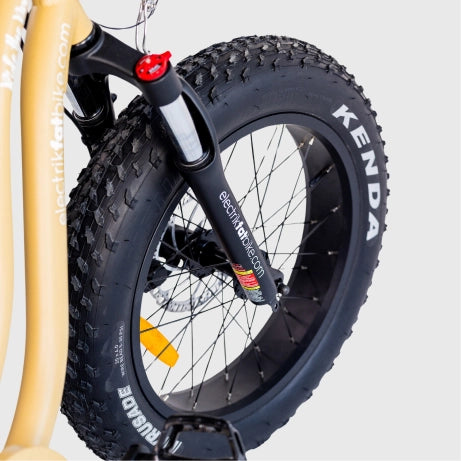 Uma fat bike elétrica é um tipo de bicicleta elétrica que possui pneus largos, no caso das Electrikfatbikes, 26 polegadas. Estes pneus volumosos oferecem maior tração e estabilidade em terrenos mais desafiantes, como areia, lama, estradas inclinadas e trilhas acidentadas.